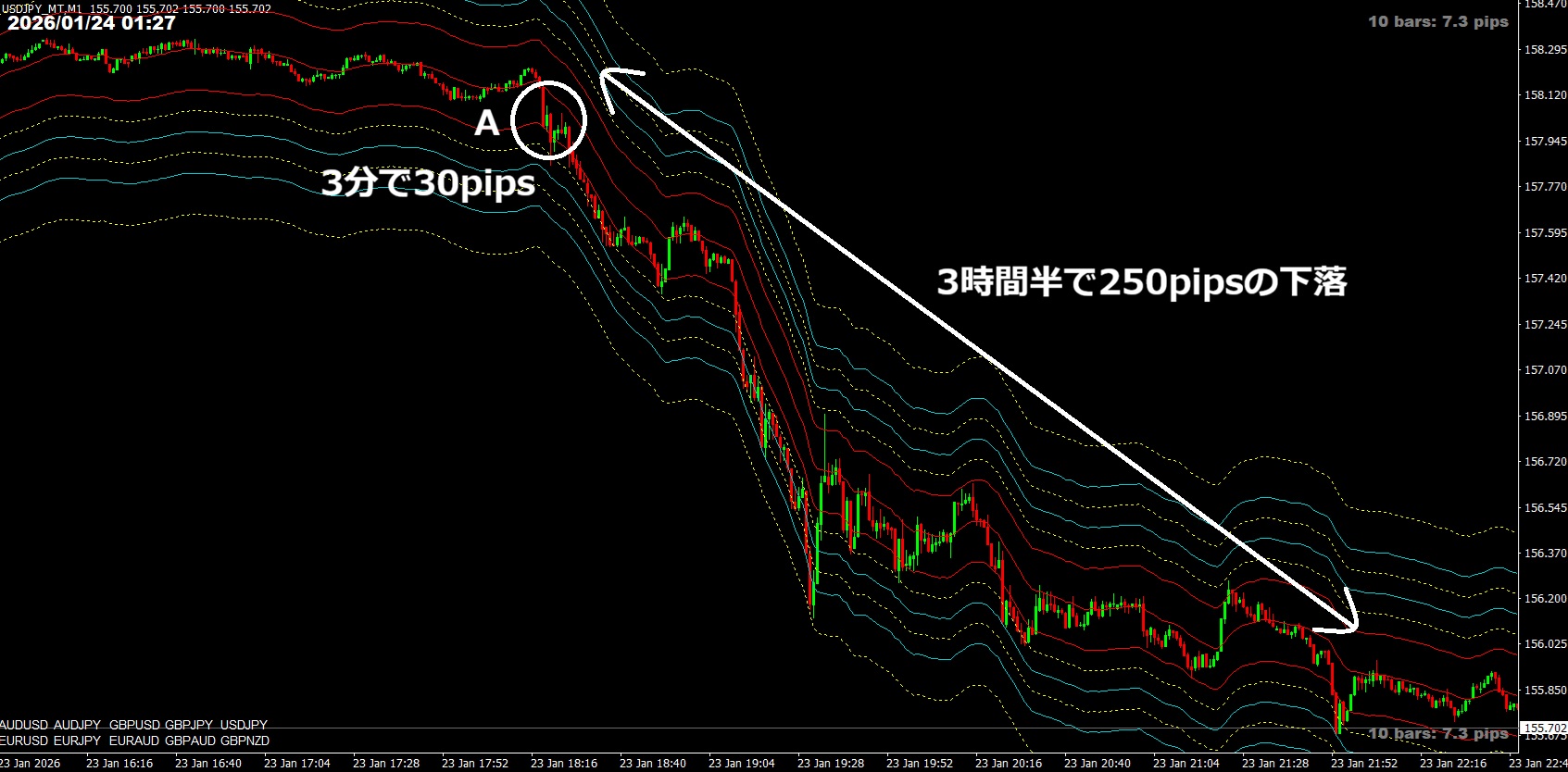 金曜日の日本時間深夜、ニューヨーククローズにかけて250pipsの下落がありました(下・・・
